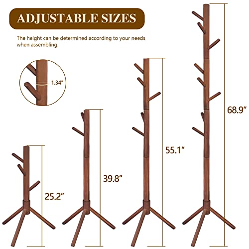 Z&L HOUSE Coat Rack Freestanding, Natural Solid Wooden Coat Tree, 8 Hooks And Adjustable Height Floor Hanger, Used In The Bedroom Living Room Office To Hang Clothes, Hats, Bags, Red-brown