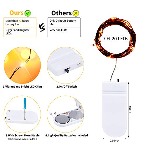 • Brightown 24 Pack LED Fairy Lights Battery Operated String Lights Waterproof Silver Wire 7 Feet 20 LED Firefly Starry Moon Lights for DIY Wedding Party Bedroom Patio Christmas (Orange, 24 Pack)