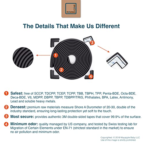 • Roving Cove Slim-Fit Corner Edge Protector for Baby Proofing (Small 15ft Edge 4 Corners), Furniture Safety Bumper Guard, Soft NBR Rubber Foam, 3M Adhesive, Onyx Black