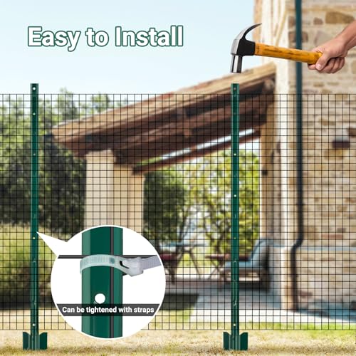 Toriexon Fence Posts 4Feet - 10Pack, Heavy Duty Metal Fence Post with U-Channel, Steel Fence U-Post for Holding Garden Wire Fence, Corner Anchor Posts etc., Green, 4FT