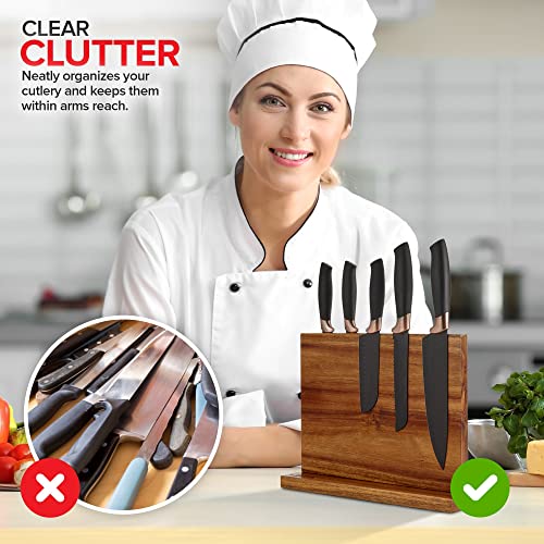 • Modern Innovations Magnetic Knife Block, Double-Sided Magnet Knife Holder Stand, With Strong Enhanced Magnets, Kitchen Counter Organization Storage Rack, Wood Stand, Utensil Holders