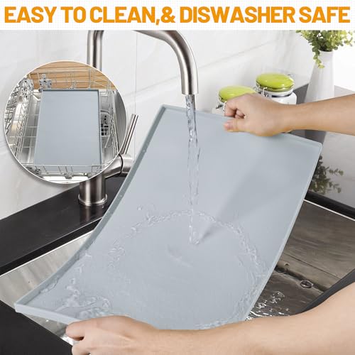 • Hubulk Dog Feeding Mat,100% Waterproof Food Grade Silicone Pet Food and Water Bowl Placemat,Dishwasher, High Raised Edge to Prevent Spills,Nonslip Tray to Stop Messes on Floor(28"x18"x0.8", Mist)