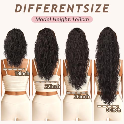 ORSUNCER Claw Long Wavy Ponytail Extension Black Brown 30" Curly Pony Tail Clip in Hair Extensions for Women fluffy Natural Looking Synthetic Hairpiece for Daily Use, 30in