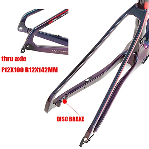 • Carbon Fiber Road Bike Frameset Discoloration Disc Brake Bicycle Frame Off Road Racing Frame 45/48/51/54CM BB92 Thru Axle F12x100/R12x142 Mm With Fork, For 700c Wheel ( Color : Red , Size : 54CM )