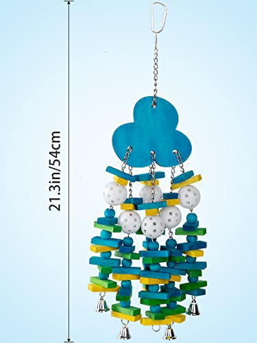 MEWTOGO Parrot Toys for Large Birds, Parrots Chew Toy Gift with Colorful Wood Blocks and Bells for Macaws African Grey and Amazon Parrots (Blueberry Style)