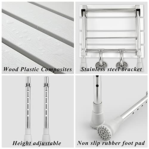 • Folding Shower Seat Wall Mounted with Legs, Shower Seat Benches Stool Chair for Inside Shower, Fold Down Shower Seat for Seniors Small Shower Space, Foldable Fold up Waterproof Wood Height Adjustable