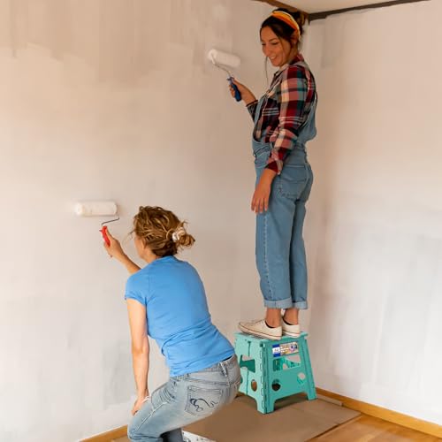 • ACKO Folding Step Stool 13 Inch Stool Heavy Duty Plastic Foldable Step Stools for Kids, Stepping Stool with Handle, Folding Stool Suitable for Kitchen Hold Up to 300 LB (Teal 1PC)