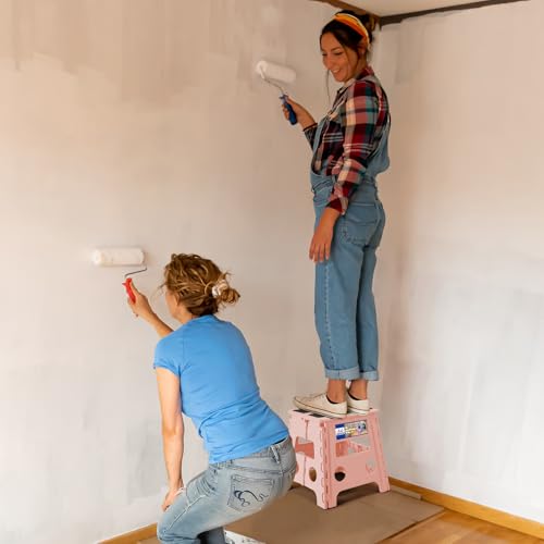 • ACKO Folding Step Stool 13 inch Height Premium Heavy Duty Foldable Step Stools for Adults and Kids, Kitchen Plastic Small Collapsible Stepping Stool Hold Up to 300 LB Dot Pink (1 Pack)