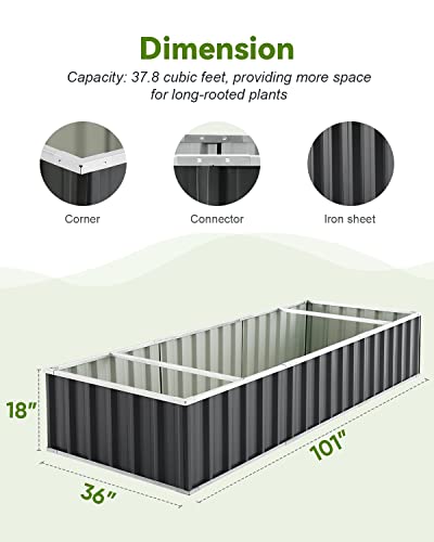 • KING BIRD 101"x 36"x 18" Galvanized Raised Garden Bed 2 Installation Methods for DIY Outdoor Heightened Steel Metal Planter Kit Box for Deep-Rooted Vegetables, Flowers, Large Raised Bed Kit(Dark Grey)