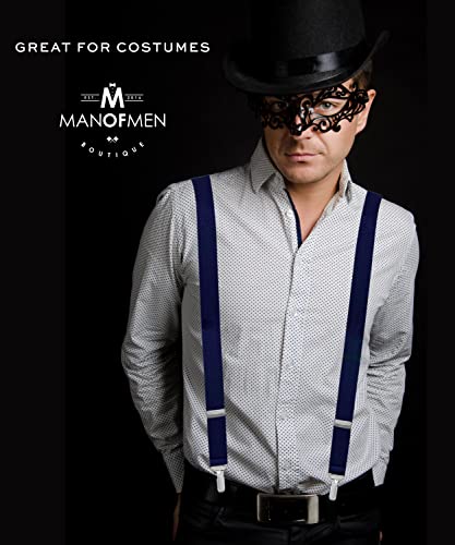 • Man of Men Navy Suspenders for Men - Adjustable Size Elastic 1 inch Wide Y Shape Costume Suspenders Women Mens Suspenders Heavy Duty Clips - Pack of 6