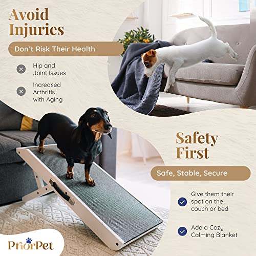 PRIORPET Dog ramp for Couch – Non-Slip, Sturdy Build Foldable Dog ramp – Supports up to 200lbs – Adjustable 7'' to 20'' – Landing Platform Seamlessly Connects – Birchwood Pet Ramp for Small Dogs – White
