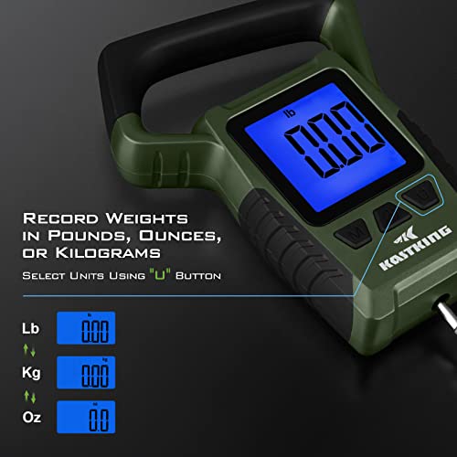 • KastKing Fish Scale, WideView Floating Waterproof Digital Scale with No-Puncture Lip Gripper, 2.5” Large LCD Display, 110lb Capacity, Stores up to 9 Weights, Green