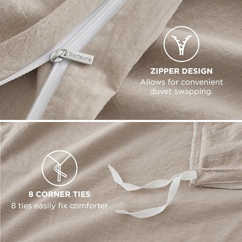 • Bedsure 100% Washed Cotton Duvet Cover King Size - Warm Sand Minimalist Duvet Cover Linen Like for All Seasons - GentleSoft™ Plain Simple Cotton Bedding, 3 Pieces (Warm Sand, King, 104"x90")