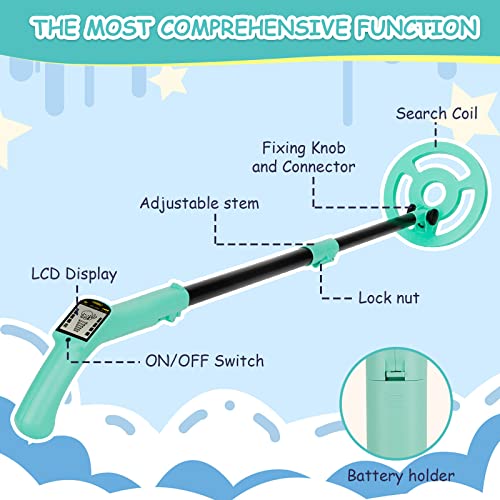 • OMMO Metal Detector, Adjustable 27.5”-37.8” Metal Detector for Kids with Intuitive LCD Display, Lightweight Kids Metal Detectors with 6” Search Coil for Exploration Hiking