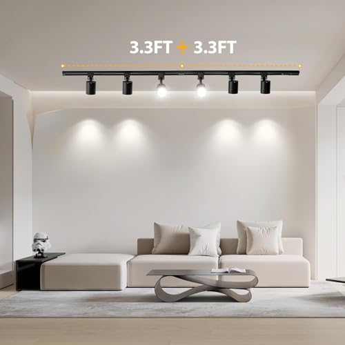 VANoopee 5-Color 8-Light LED Track Lighting Kit with 6.6FT H Type Track Lighting Rail, LED Track Light Heads Dimmable Modern Kitchen Track Lighting Fixtures Ceiling Spotlight, CRI90+ 10W 800lm Black, 4 Lights