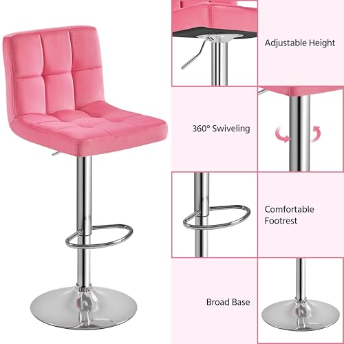 • Yaheetech Pink Bar Stools Set of 2, Adjustable Velvet Barstools, Modern Counter Height Swivel Stool with Bigger Base for Kitchen Island, Pink
