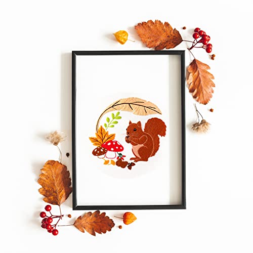 • Louise Maelys Animal Embroidery Kits for Beginners with Autumn Squirrel Pattern,Adults Starter Cross Stitch Kit DIY Needlepoint