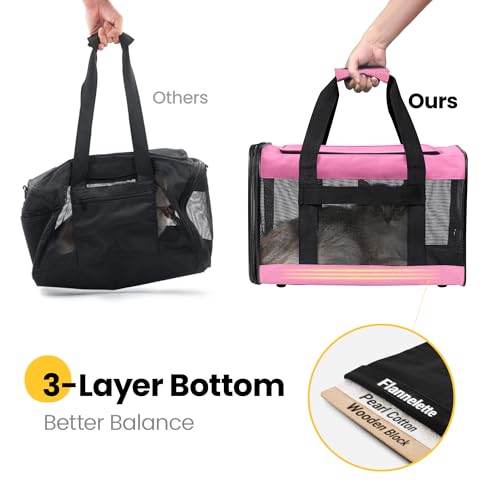 • Conlun Cat Carrier Airline Approved, Soft-Sided Dog Carrier with Inner Safety Leash, Pet Transport Carrier for Small-Medium Cats Puppies up to 15 Lbs, Collapsible Travel Kitten Carrier Bag -Pink M