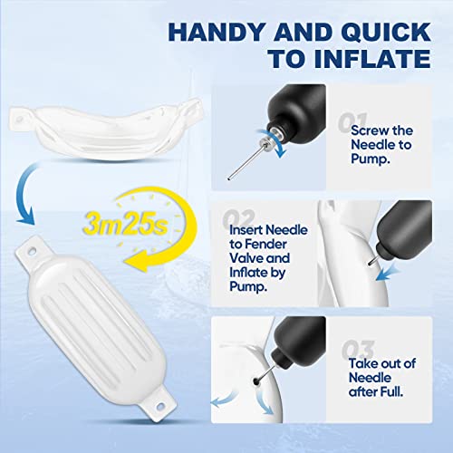 • Dreizack Boat Fenders 4 Pack 6.5"x23", Boat Bumpers for Docking with 4 Ropes, Inflatable Ribbed Marine Pontoon Boat Fender Bumper for Docks with 1 Storage Bag, 1 Air Pump and 4 Needles, White