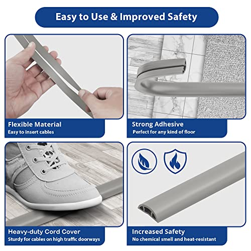 • Cord Cover Floor 6ft Grey, PVC Floor Cable Cover, Cord Hider Floor Cord Protector Prevent Cable Trips & Protect Wires, Floor Cable Management Hide Cords on Floor, Cord Cavity - W0.47 x H0.28