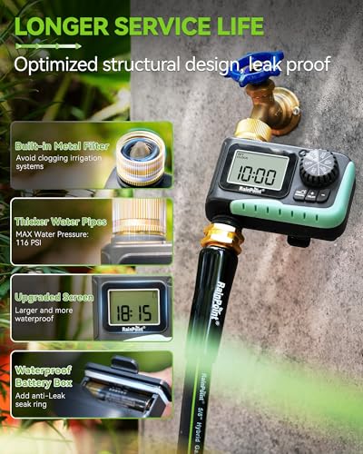 • RAINPOINT Sprinkler Timer with Brass Swivel, Programmable Water Timer for Garden Hose with Rain Delay/Manual Watering, Digital Irrigation System Kit for Lawns, 1 Outlet