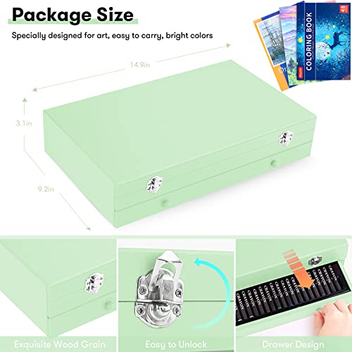 iBayam Art Supplies, 150-Pack Deluxe Wooden Art Set Crafts Drawing Painting Kit with 1 Coloring Book, 2 Sketch Pads, Creative Gift Box for Adults Artist Beginners Kids Girls Boys, Macaron green, Large