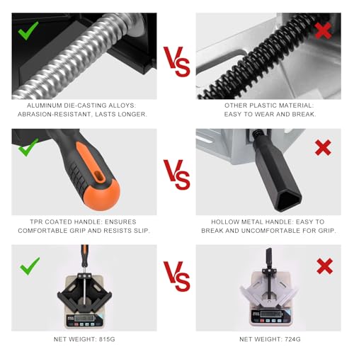 • Right Angle Clamp, Housolution [4 PACK] Single Handle 90° Aluminum Alloy Corner Clamp, Right Angle Clip Clamp Tool Woodworking Photo Frame Vise Holder with Adjustable Swing Jaw - Black
