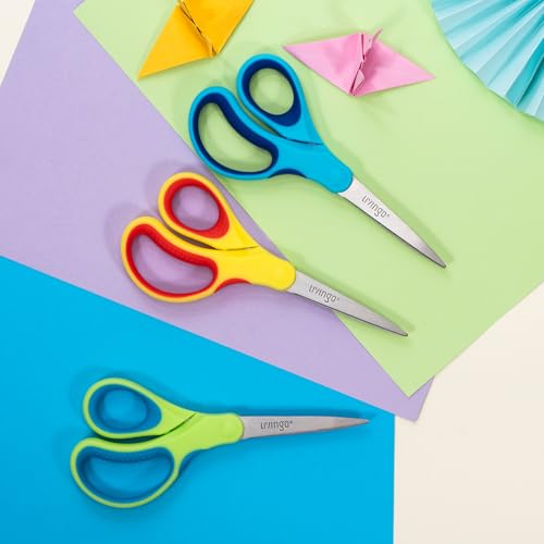 • LIVINGO Student Scissors for School: 7 Inch 3 Pack Sharp Pointed Tip Teacher Scissors for Kids Middle High School College Classroom Craft, Comfortable Grip, Right Left Handed, Blue, Green, Yellow