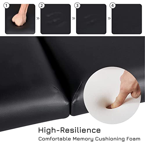 • PrimeZone Portable Massage Table Lash Bed- 3 Folding Massage Bed, Height Adjustable Black Tattoo Lash Table with Accessories, Professional Aluminum Spa Table for Eyelash, Facial, Therapy, 84" x 32"