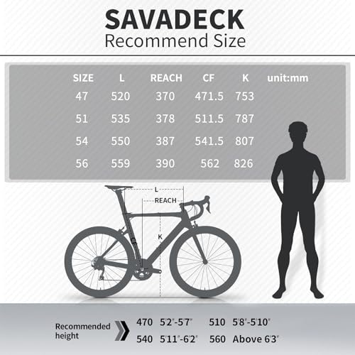 • SAVADECK Carbon Road Bike with Shimano SORA R3000 18 Speed Derailleur System,Racing Bicycle with Carbon Fiber Frame Carbon Fork and Double V Brake for Adult.(White 56cm)