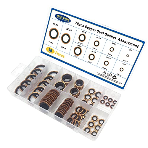 BUSY-CORNER 78 PCS 10 Sizes Copper Metric Bonded Seal Dowty Washer, Automotive Self-Centred Dowty Seal Gasket Assortment, M6/8/10/12/14/16/18/20/22/24