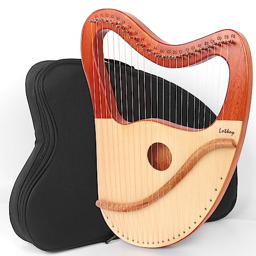 Lyre Harp, Lotkey 23 Metal Strings Harp Mahogany Body and Solid Spruce Board Lyre Harp with Tuning Wrench, Extract Strings, Manual and Gig Bag, Solid Mahogany + Solid Spruce, 23 Strings Mahogany Harp