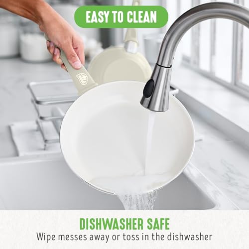 • GreenLife Soft Grip 16 Piece Cookware Set, Non-Toxic PFAS-Free Ceramic Nonstick, Frying, Sauce, Saute, Utensils, Glass Lids, Stay-Cool Handles, Wobble Free, Dishwasher & Oven Safe, Taupe