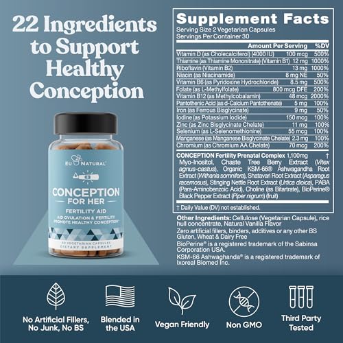 • Eu Natural Conception Fertility for Her & Him Bundle - Fertility Supplements Combo for Women & Men – Prenatal Vitamins – Promote Hormone Balance, Cycle Consistency, Aid Ovulation – 120 Count