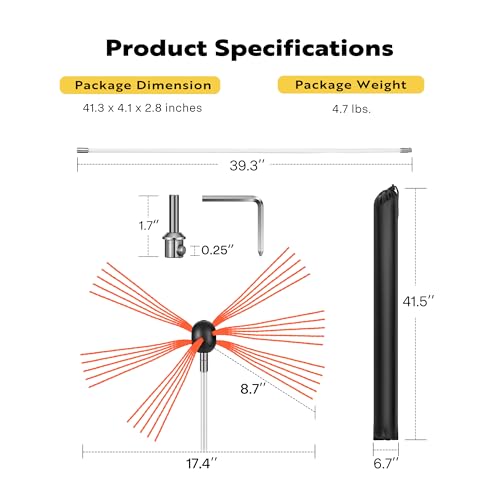 • VIVOHOME 30 FT Chimney Sweep Cleaning Brush Tool Kit Rotary with 9 Reinforced Nylon Flexible Rods Snap Locking 45 Degree Angle Driven by Drill for Fireplace Flue Home Use