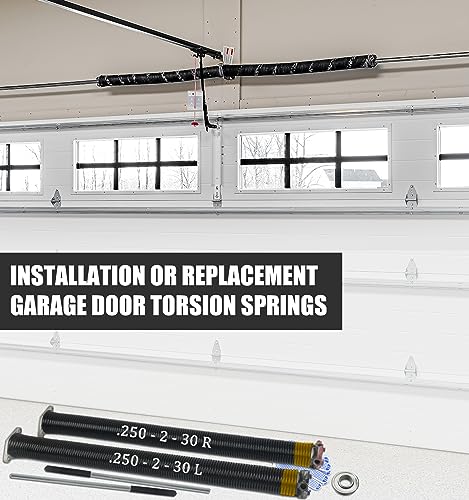 • Garage Door Torsion Spring Set, Pair of 2" Electrophoresis Coated Garage Door Spring Replacement with 2 Non-Slip Winding Bars and Bearing, Minimum 16000 Cycles (.250x2x30")