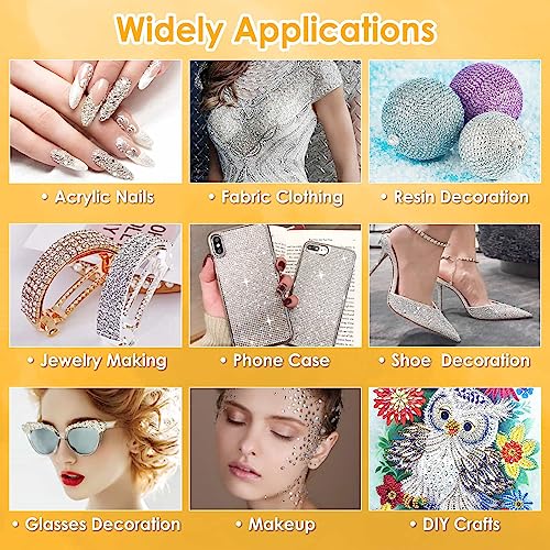 Evatage B7000 Glue Clear with Precision Tip, 2Pcs 110mL Jewelry Bead Gem Tac Glue, Bedazzling Adhesive with Silver Rhinestones, Dotting Pen Tool for Jewelry Making Clothe Fabric Shoes DIY Crafts Nail Art