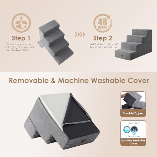• EHEYCIGA Dog Stairs for Bed 20" H, 4-Step Extra Wide Dog Steps for High Bed, Pet Steps for Small Dogs and Cats, Non-Slip Balanced Pet Ramp Indoor, Grey