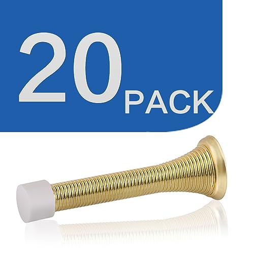 • HOMOTEK 20 Pack Spring Door Stopper with Rubber Bumper 3-1/8" Flexible Spring Heavy Duty Wall Door Stop Low Mounted Door Bumper for Home (Bright Brass)