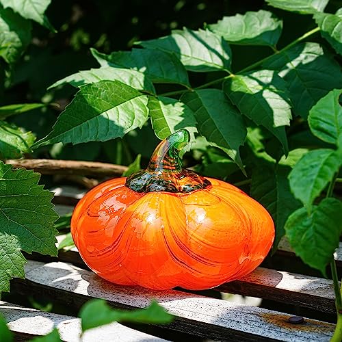 • H&D HYALINE & DORA Halloween Glass Pumpkin Collectible Figurine, Blown Glass Pumpkin Fall Decorations for Home Fall Harvest Thanksgiving, Orange Crystal Art Pumpkin Paperweight