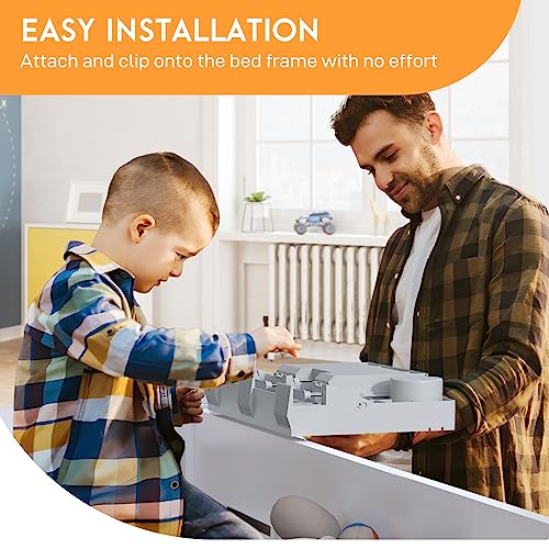 • SPACELEAD Bedside Shelf for Bed – College Dorm Room Clip On Nightstand with Cup Holder & Cord Holder&Drawer – Bunk Bed Shelf for Organizer Top for Bedroom (Grey,Plastic)