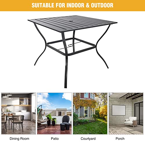 ALBOMI Outside Patio Table with Umbrella Hole, 37 Inch Metal Square Outdoor Bistro Dining Table for 4, Weatherproof Porch Garden Tables for Outside Backyard Poolside, Black, 37" x 37" x 28" - Square