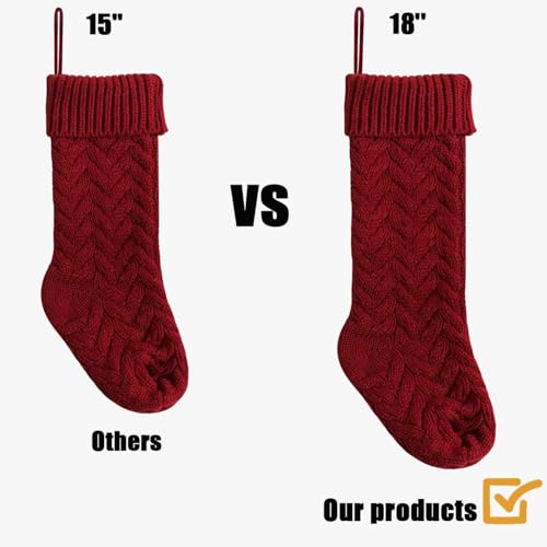 • Fesciory 18 Inches Christmas Stockings Bulk, 1 Pack Large Size Cable Knitted Fireplace Hanging Stockings for Family Holiday Xmas Party Decorations, Burgundy