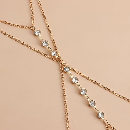 • 14K Gold Sexy Body Chains for Women, Layered Rhinestone Crossover Bikini Bra Body Jewelry, Summer Beach Crystal Belly Waist Chain(8 Diamonds(Gold))