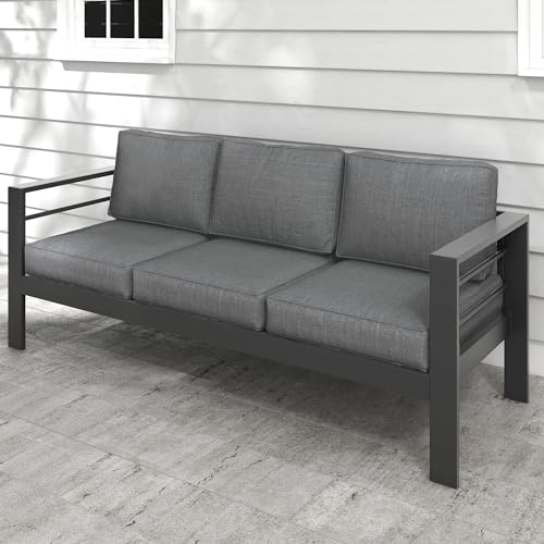 Kiss the Water Outdoor Couch Aluminum Patio Furniture Sofa, 3 Seat All-Weather Metal Patio Couch with 5" Thick and Soft Cushion and Wide Arm, Outdoor Sofa for Balcony, Porch, Dark Gray + Dark Gray, 3 Seats Sofa