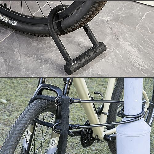 • Heavy Duty Bike U Lock - Super Strong 12 Ton Shear, 20mm U Shape Lock Anti-Theft Silicone Covered Electric Scooter Lock Keyhole with Sliding Cover 4ft Steel Cable with Mounting Bracket and 3 Keys(S)