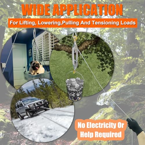 • YATOINTO Rope Pulley Hoist with Metal Bearing 4400 LB, 8:1 Pulley Block and Tackle System, Pulley Block 2200LB Loading Capacity, 65ft Heavy Duty Rope Hoist for Hunting Garage Warehouse Constructions