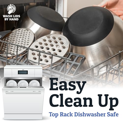 • Priority Chef Stainless Steel Mixing Bowls with Lids Set, 3 Grater Attachments, Airtight Lids, Non-Slip Silicone Base Mixing Bowl Set, Large Prep Metal Mixing Bowls for Kitchen, Black