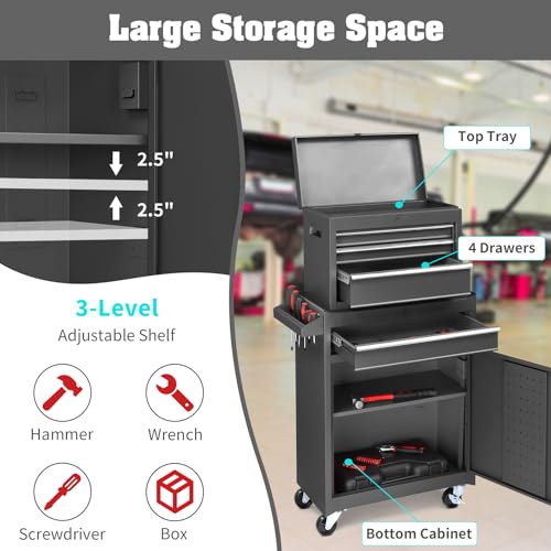 • Winado 4-Drawer Rolling Tool Chest with Wheels & Lock, Tool Box with Large Storage Cabinet and Adjustable Shelf, Removable Portable Top Box for Garage, Warehouse, Factory