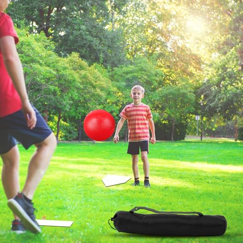 • Hiboom 5 Pcs Baseball & Softball Base Set with Portable Carrying Bag 3 Throw Down Bases 1 Homeplate 1 Pitching Rubber for Kickball Softball Backyard Playground Practice Kids Adults(White)